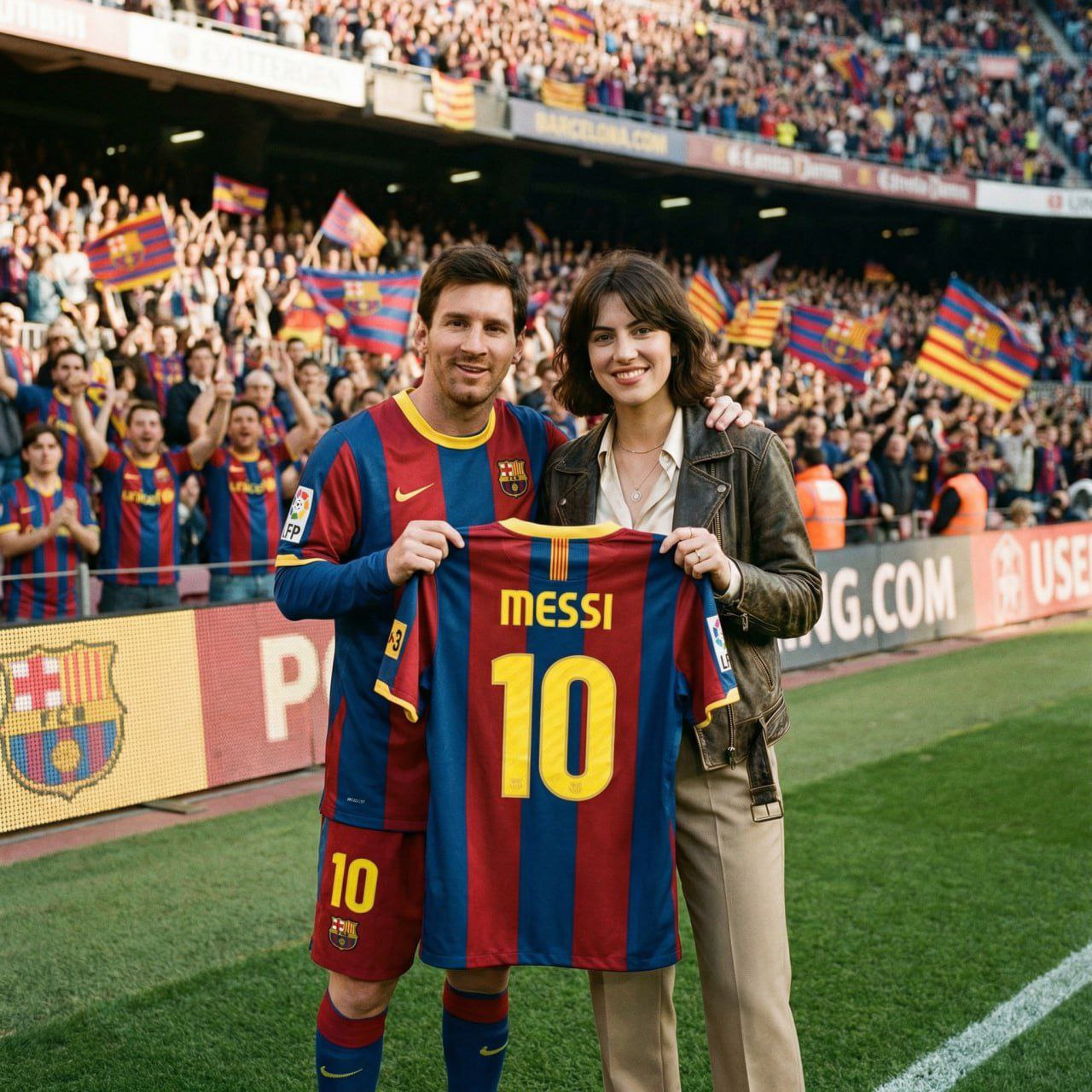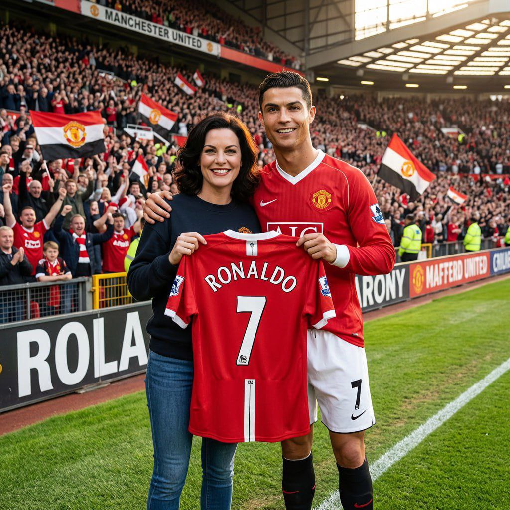 Композиция: Оба человека в центре, плечом к плечу. Футболист обнимает пользователя за плечи. Они вместе держат футбольную футболку, обращенную к камере. На спине футболки четко видно фамилию футболиста и номер [игровой номер].