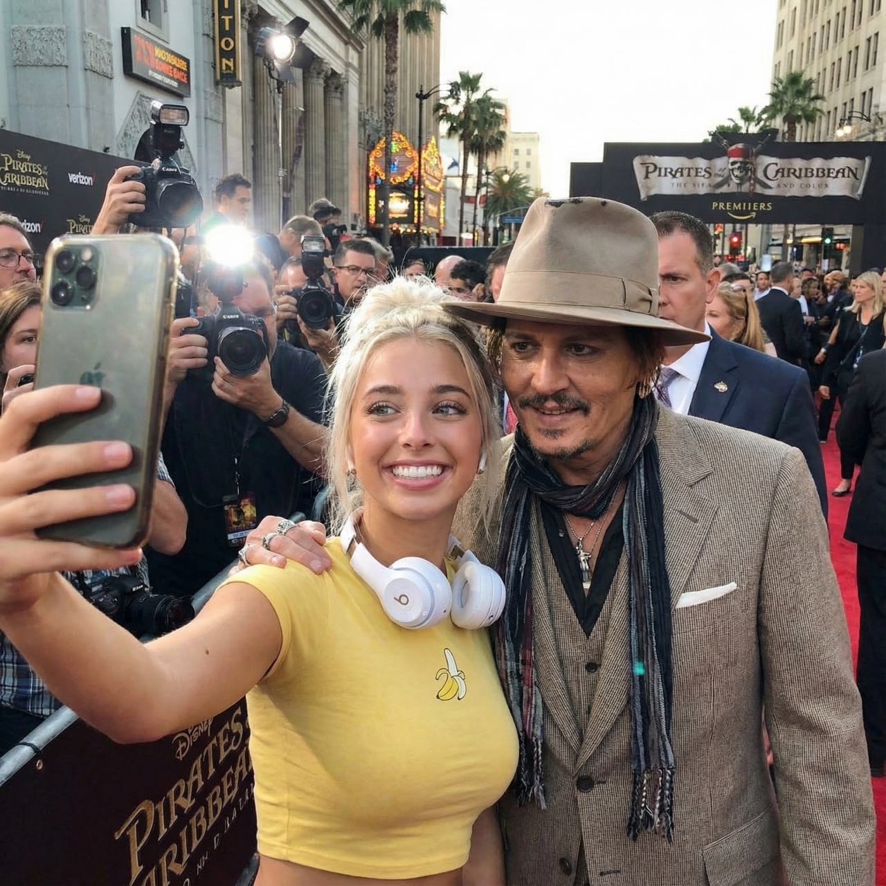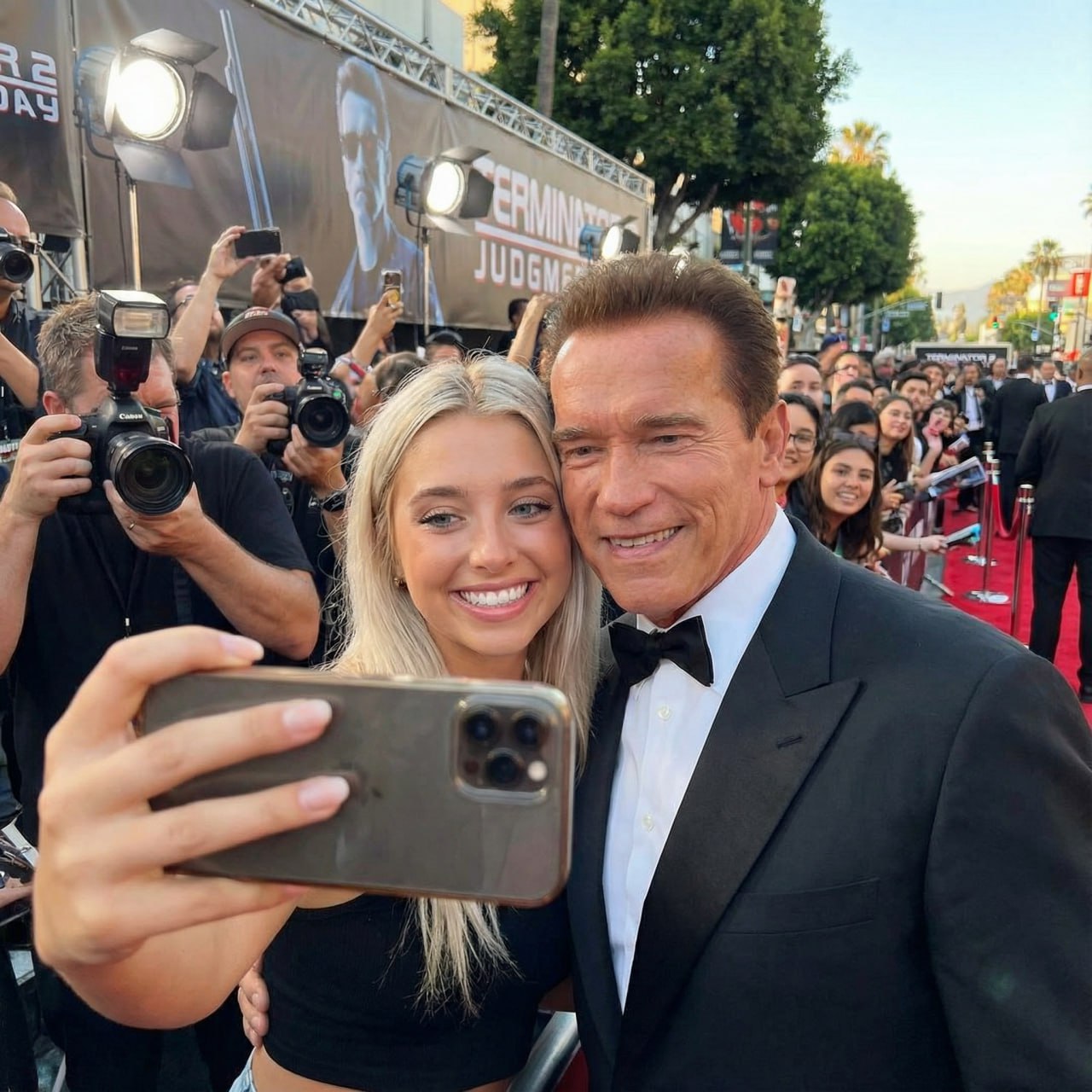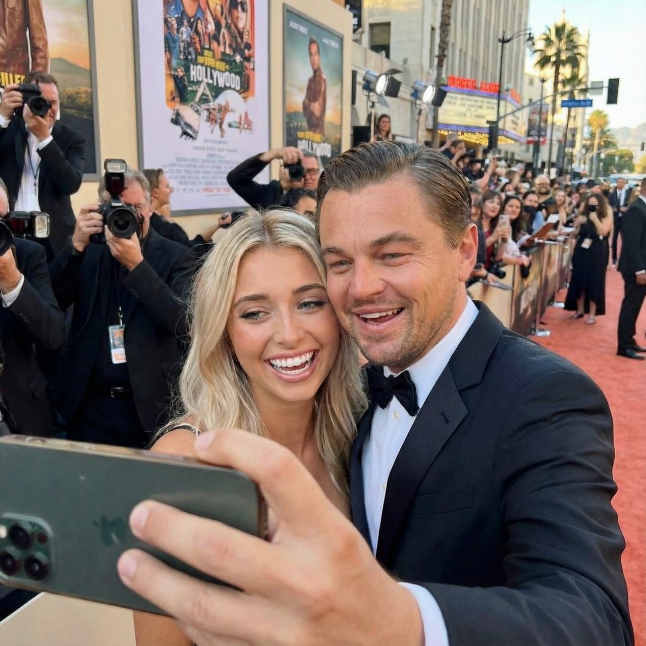 Реалистичное селфи, я на переднем плане, рядом со мной человек крайне похожий на знаменитость [ИМЯ ЗНАМЕНИТОСТИ]. Мы вместе [ДЕЙСТВИЕ, например: танцуем, обнимаемся, смеемся, поем на сцене, позируем на красной дорожке и т. д.]. Атмосфера живая, задний фон — [МЕСТО, например: концертная сцена, пляж, городская улица, премьера фильма, гримерка]. Освещение естественное, лица улыбаются, эмоции искренние, выглядит как реальное фото, снятое на смартфон с эффектом стихийной съемки. Пропорции тела естественные, стиль одежды современный или подходящий эпохе знаменитости. Наши лица близко крупным планом.