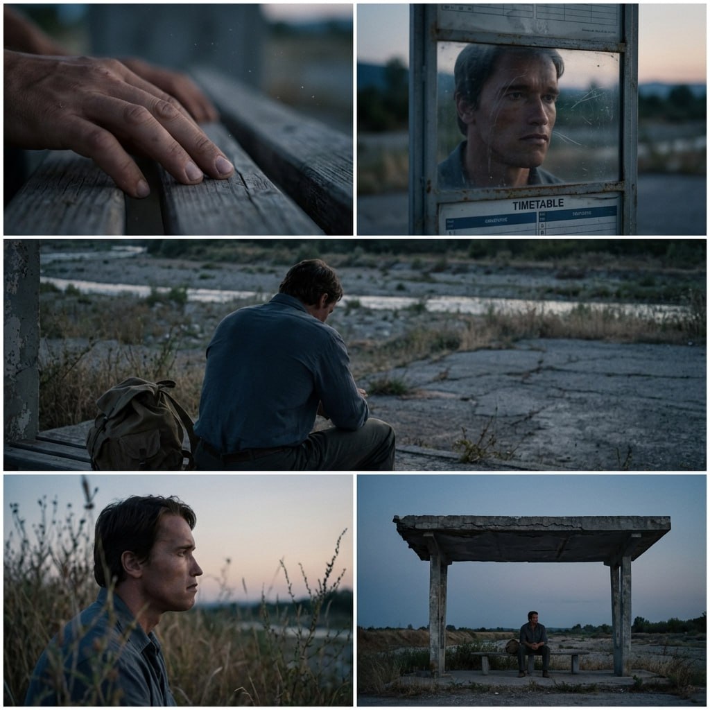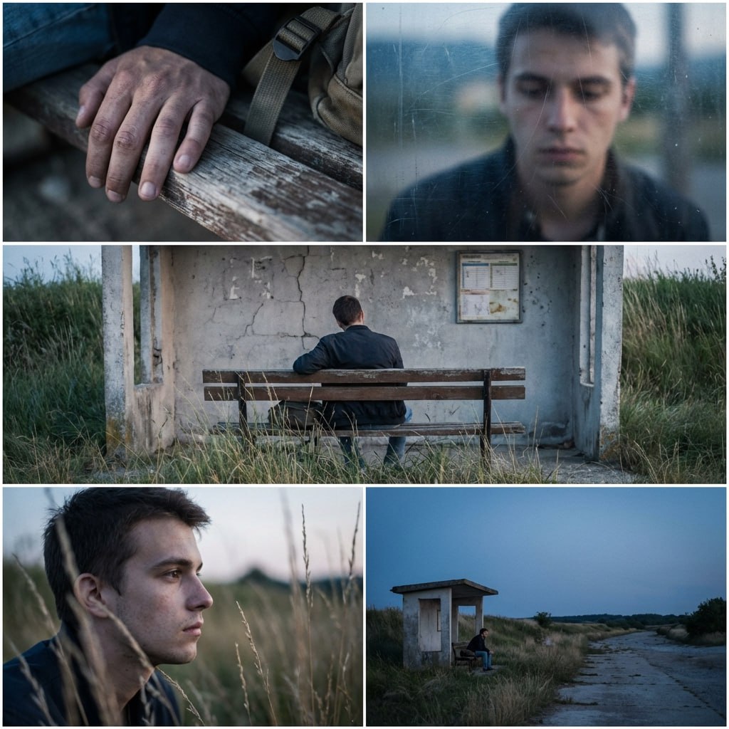 «окружающая среда»: «заброшенная автобусная остановка под открытым небом рядом с высохшим руслом реки»,